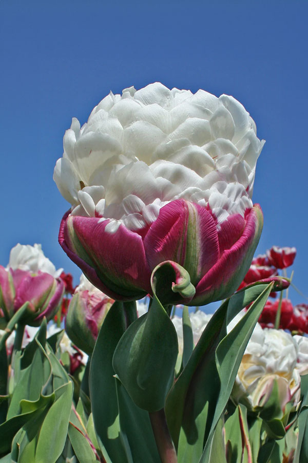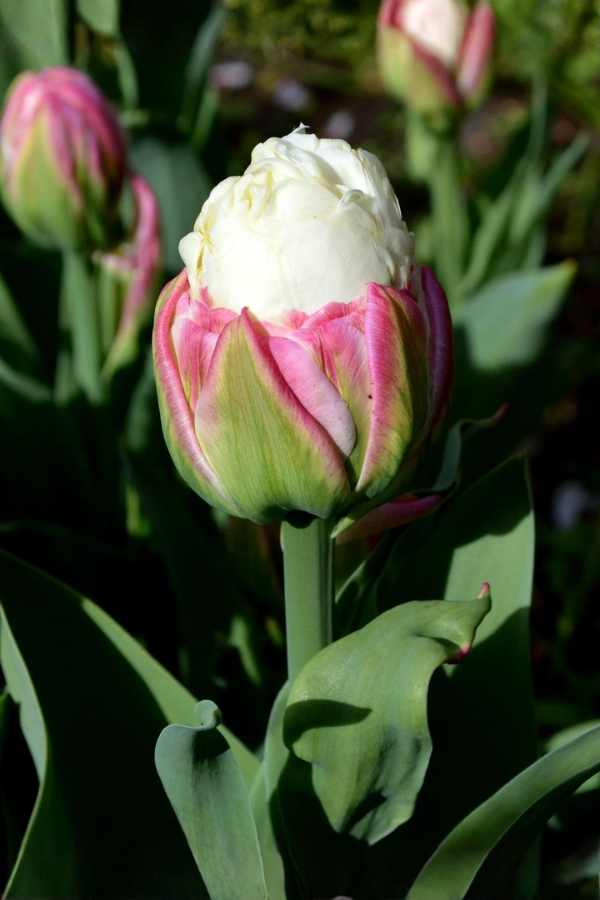 Tulipan Ice Cream: Jak lody! Wyjątkowy podwójny, późno kwitnący biały tulipan z płatkami róż na dole. Wydaje się być różowy, ale nagle pojawia się biały kwiat. Oferta dotyczy 1 cebulki