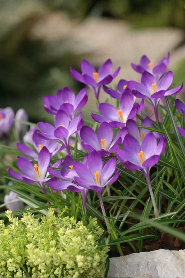 Rośliny te doskonale wyglądają również na trawnikach. Przy sadzeniu cebulek krokusów na trawnikach, wybierzmy miejsca, w których darń nie jest zbyt zwarta. W luźno rosnącej trawie z niezbyt gęstymi korzeniami, pędy kwiatowe krokusów łatwiej wydostaną się na powierzchnię. Otwory, w których umieścimy cebulki, można wykonać wbijając w trawę widły i lekko je przechylając do przodu i do tyłu. Aby wyglądało to naturalnie, zadbajmy aby cebule były umieszczane nieregularnie, jakby przypadkowo.Sposób pielęgnacji krokusów wiosennych jak i jesiennych jest taki sam. Zaleca się je sadzić w miejscach słonecznych – wtedy kwitną najbardziej obficie. Lubią gleby żyzne, próchnicze, przepuszczalne o lekko kwaśnym odczynie. choć dobrze radzą sobie też na słabszych (lżejszych) podłożach. Ne powinno się ich uprawiać na ziemi ciężkiej, podmokłej i słabo przepuszczalnej. W takich warunkach szybko dochodzi do gnicia cebul.