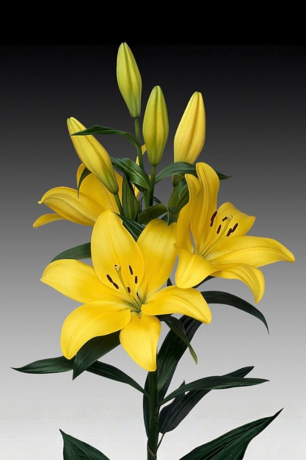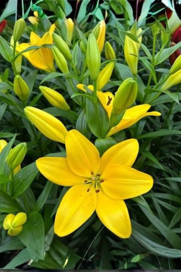 ‘El Divo’ to lilia, która wygląda jak kropla słońca zamknięta w płatkach: kwiaty są intensywnie żółte, czyste, świetliste, uniesione ku górze i bardzo liczne – tworzą na rabacie efekt złocistej fontanny. To odmiana „na pokaz”: mocna, wysoka, równa i niesamowicie dekoracyjna.