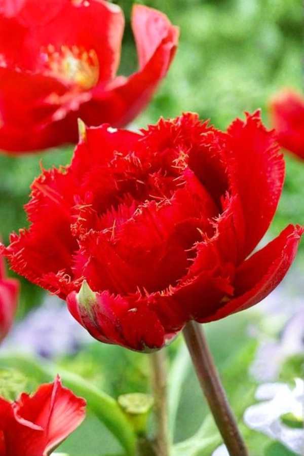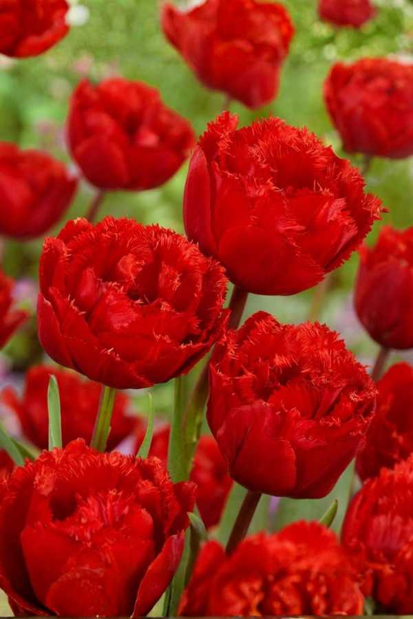 Bez wątpienia tulipany należą do najpopularniejszych roślin cebulowych kwitnących wiosną. Jako pierwszych możemy spodziewać się tulipanów botanicznych. Następne w ogrodzie rozpoczynają kwitnienie pojedyncze i pełne, a na koniec kwietnia mieszańcy Darwina. W maju pojawią sie tulipany liliokształtne i wszystkie z grupy Crispa. W połowie maja natomiast możemy podziwiać tulipany papuzie i Rembrandta.